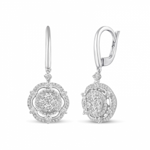 Серьги висячие из белого золота 585 пробы с бриллиантом