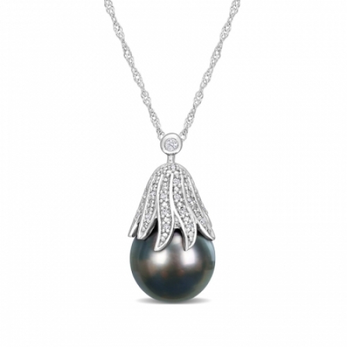 Средние характеристики: жемчуг черный, размер: 10.0-11 мм; круглый бриллиант