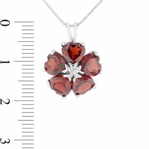 Средние характеристики: гранат красный, размер: 6 мм, огранка Сердце; круглый бриллиант