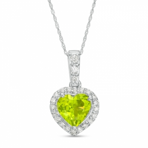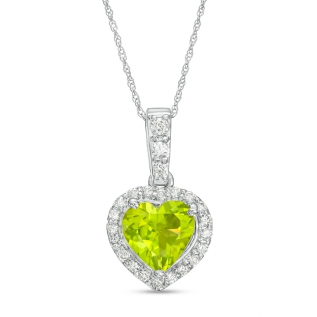 Средние характеристики: перидот зеленый, размер: 8 мм, огранка Сердце; круглый бриллиант