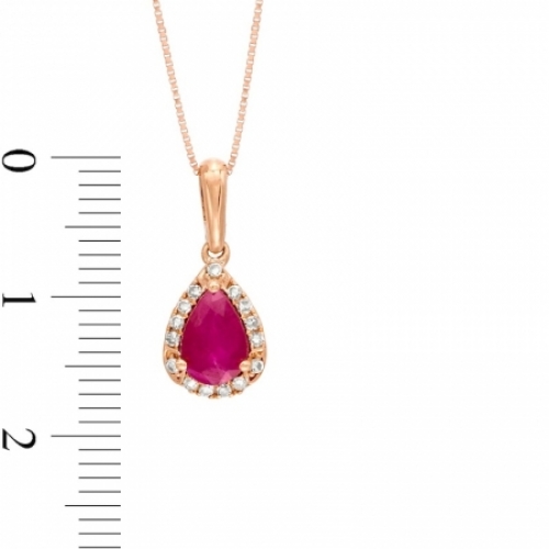 Средние характеристики: рубин красный, размер: 7x5 мм, огранка Груша; круглый бриллиант