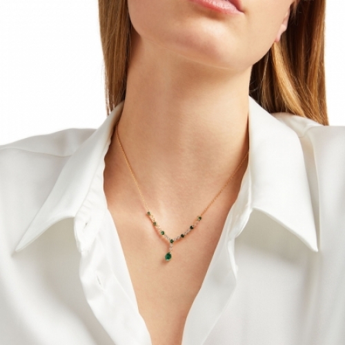 Колье из серебра 925 пробы с изумрудом и белым сапфиром
