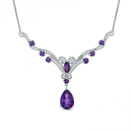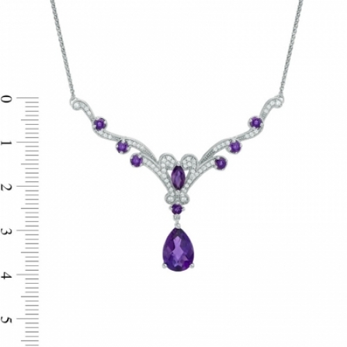 Средние характеристики: аметист фиолетовый, размер: 10 мм, огранка Груша; белый сапфир гт, размер: 0.9 мм, 1.2 мм, огранка Круг