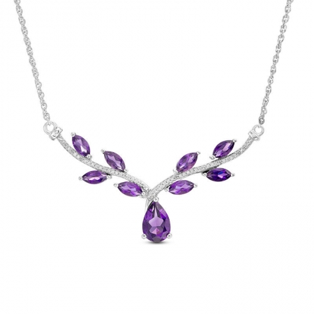 Средние характеристики: аметист фиолетовый, размер: 9x6 мм, огранка Груша; аметист, размер: 6x3 мм, огранка Маркиз; круглый белый бриллиант