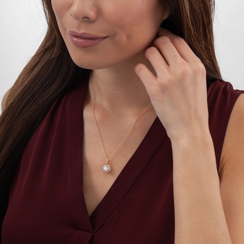 Колье из желтого золота 585 пробы с белым жемчугом и бриллиантом