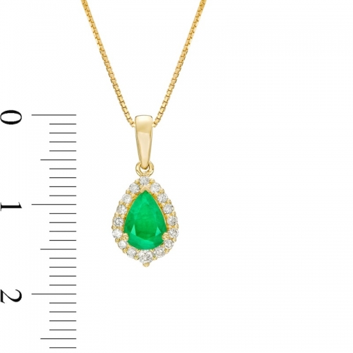Средние характеристики: изумруд зеленый, размер: 7x5 мм, огранка Груша; круглый бриллиант