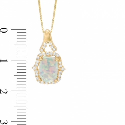 Средние характеристики: опал белый, размер: 8x6 мм, огранка Кушон (подушка); круглый бриллиант