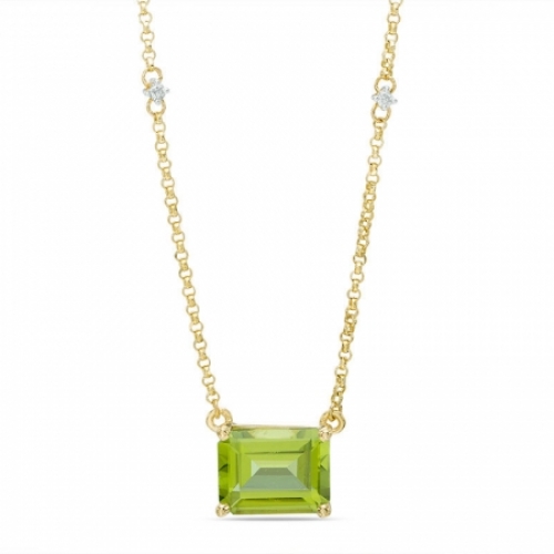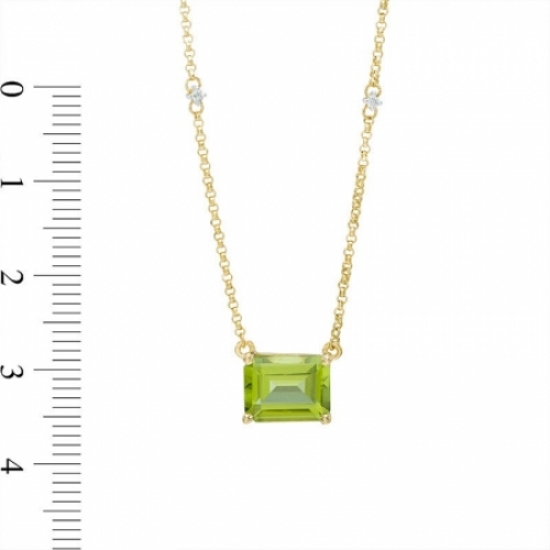 Средние характеристики: перидот зеленый, размер: 9x7 мм, огранка Октагон; круглый бриллиант