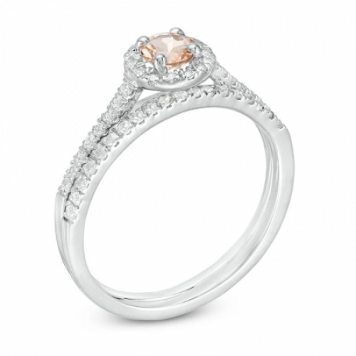 Комплект колец из белого золота 585 пробы с морганитом и бриллиантами