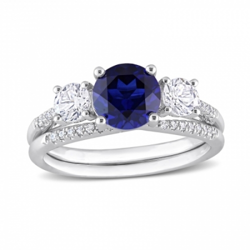 Средние характеристики: сапфир голубой, размер: 7 мм, огранка Круг; сапфир белый, размер: 4 мм, огранка Круг; круглый белый бриллиант