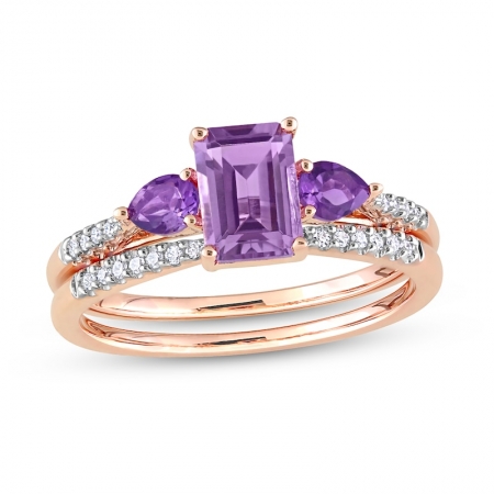 Средние характеристики: аметист фиолетовый, размер: 7x5 мм, огранка Октагон; аметист, размер: 4x3 мм, огранка Груша; круглый белый бриллиант