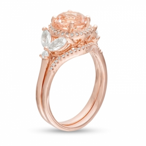 Средние характеристики: морганит розовый, размер: 7 мм, огранка Круг; белый сапфир гт, размер: 5x2.5x1.7 мм; круглый белый бриллиант