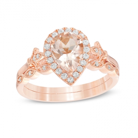 Средние характеристики: морганит розовый, размер: 8x6 мм, огранка Груша; круглый бриллиант