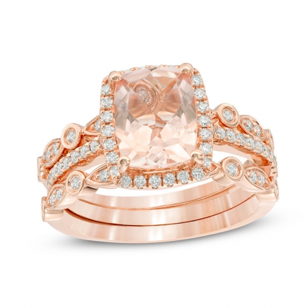 Средние характеристики: морганит розовый, размер: 9x7 мм, огранка Кушон (подушка); круглый бриллиант