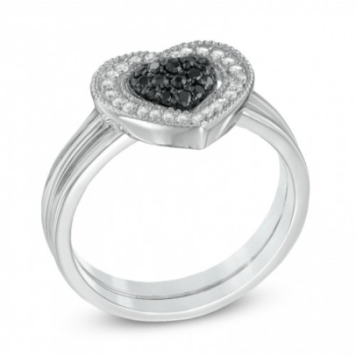 Комплект колец из серебра с черными и белыми бриллиантами