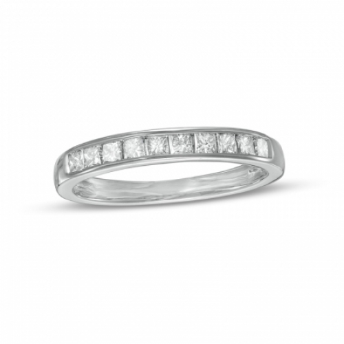 Обручальное кольцо из белого золота с большими бриллиантами огранки принцесса