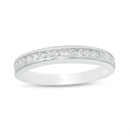 Обручальное кольцо из белого золота с бриллиантами огранки принцесса