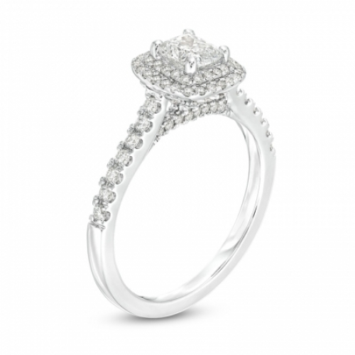 Средние характеристики: бриллиант белый, огранка Кушон (подушка); круглый бриллиант