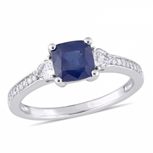 Средние характеристики: сапфир голубой, размер: 6 мм, огранка Кушон (подушка); сапфир белый, размер: 3 мм, огранка Сердце; круглый белый бриллиант