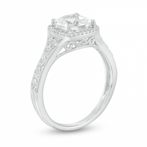 Средние характеристики: белый сапфир гт, размер: 7 мм, огранка Кушон (подушка); круглый бриллиант