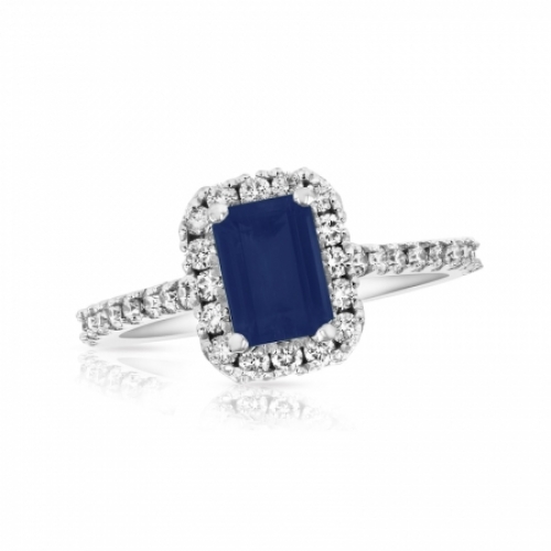 Средние характеристики: сапфир голубой, размер: 9x7 мм, огранка Октагон; круглый бриллиант