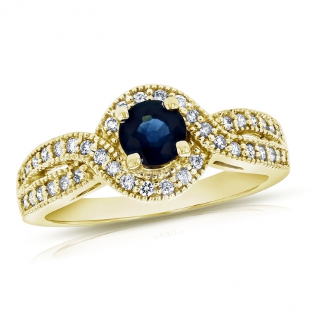 Помолвочное кольцо из желтого золота 585 пробы с сапфиром и бриллиантами