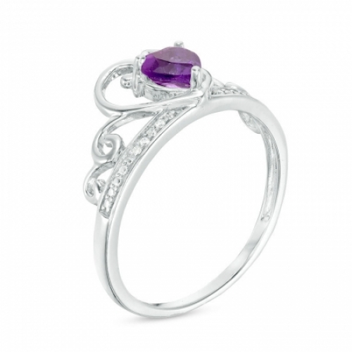 Средние характеристики: аметист фиолетовый, размер: 5 мм, огранка Сердце; круглый бриллиант