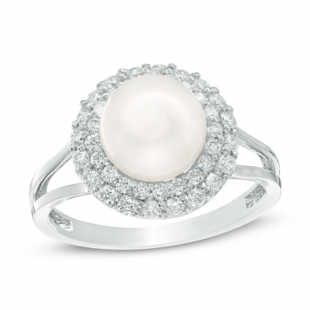 Средние характеристики: жемчуг белый, размер: 8 мм, огранка Круг; круглый бриллиант