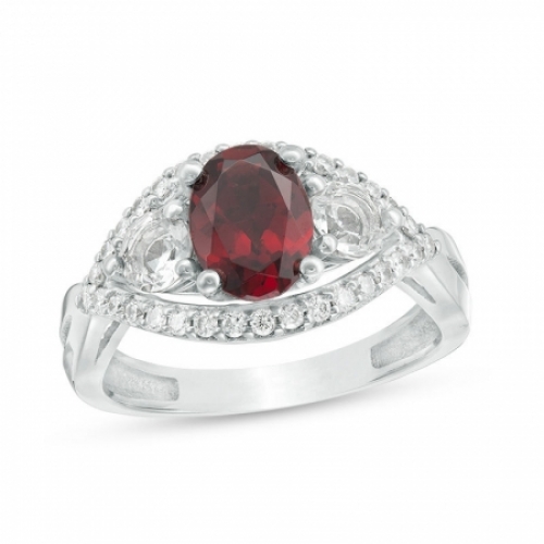 Средние характеристики: гранат красный, размер: 8x6 мм, огранка Овал; топаз белый, размер: 4 мм, огранка Круг; круглый белый бриллиант