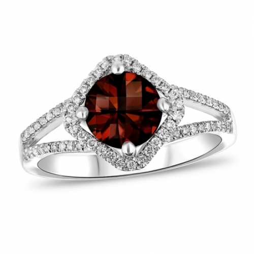 Средние характеристики: гранат красный, размер: 7 мм, огранка Круг; круглый бриллиант