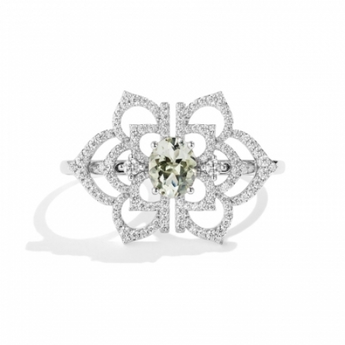 Женское кольцо из белого золота 585 пробы с кварцем и бриллиантами