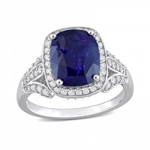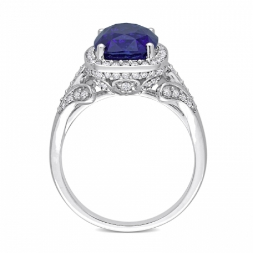 Средние характеристики: сапфир голубой, размер: 10.23x8.22 мм, огранка Кушон (подушка); круглый бриллиант