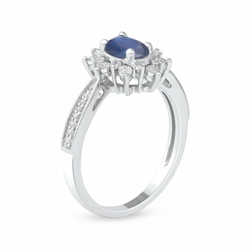 Женское кольцо из белого золота 585 пробы с сапфиром и бриллиантами