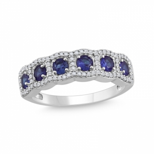Женское кольцо из белого золота 585 пробы с сапфиром и бриллиантами