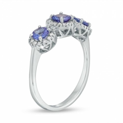Женское кольцо из белого золота 585 пробы с танзанитом и бриллиантами