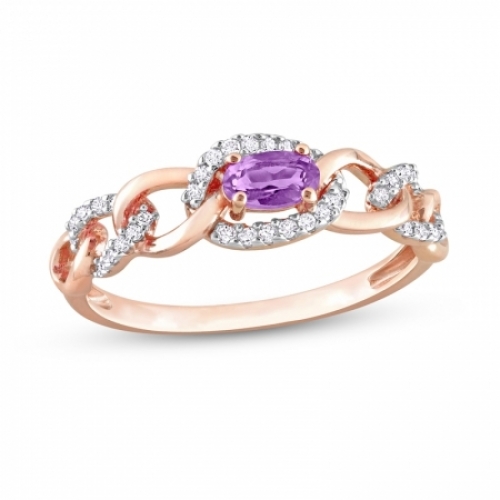 Средние характеристики: аметист фиолетовый, размер: 5x3 мм, огранка Овал; круглый бриллиант