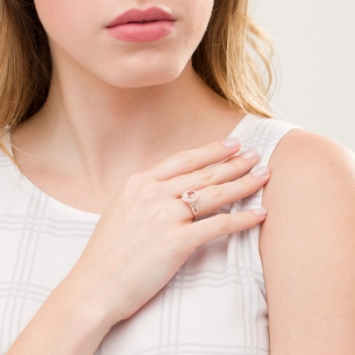 Женское кольцо из красного золота 585 пробы с морганитом и бриллиантами