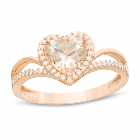 Средние характеристики: морганит розовый, размер: 7 мм, огранка Сердце; круглый бриллиант