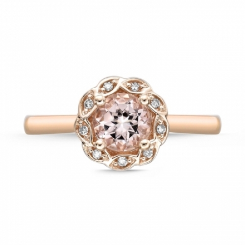 Женское кольцо из красного золота 585 пробы с морганитом и бриллиантами