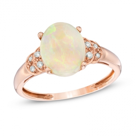 Средние характеристики: опал белый, размер: 8x10 мм, огранка Овал; круглый бриллиант