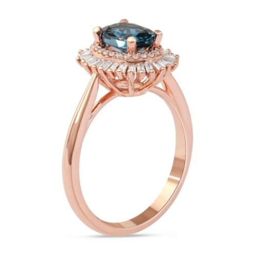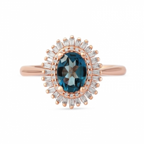 Средние характеристики: топаз голубой, размер: 8x6 мм, огранка Овал; круглый бриллиант; белый бриллиант, огранка Багет