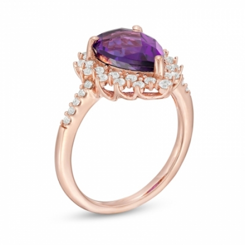 Средние характеристики: аметист фиолетовый, размер: 12x8 мм, огранка Груша; круглый белый сапфир гт диаметром 1.2 мм
