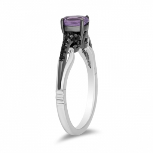 Средние характеристики: аметист фиолетовый, размер: 6x4 мм, огранка Овал; круглый черный бриллиант