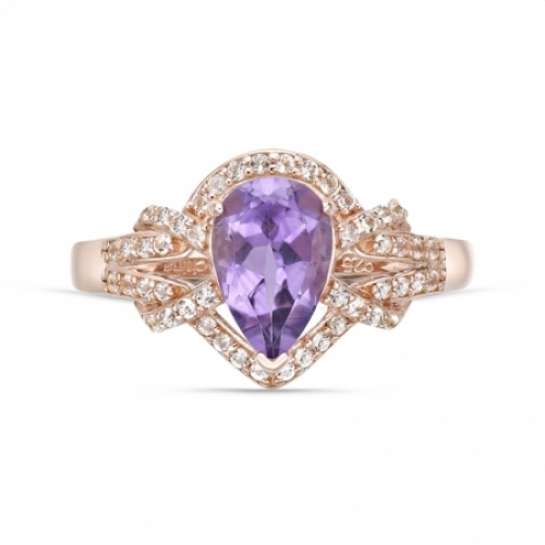 Средние характеристики: аметист фиолетовый, размер: 9x6 мм, огранка Груша; топаз белый, размер: 1 мм, огранка Круг