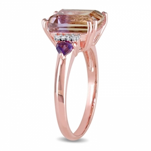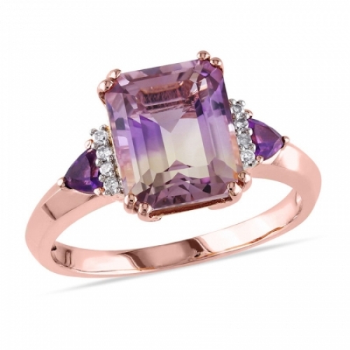 Средние характеристики: аметрин фиолетовый, размер: 10x8 мм, огранка Октагон; аметист, размер: 3 мм, огранка Триллион; круглый белый бриллиант
