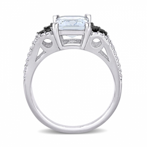 Средние характеристики: аквамарин голубой, размер: 9x7 мм, огранка Октагон; круглый черный бриллиант; круглый белый бриллиант
