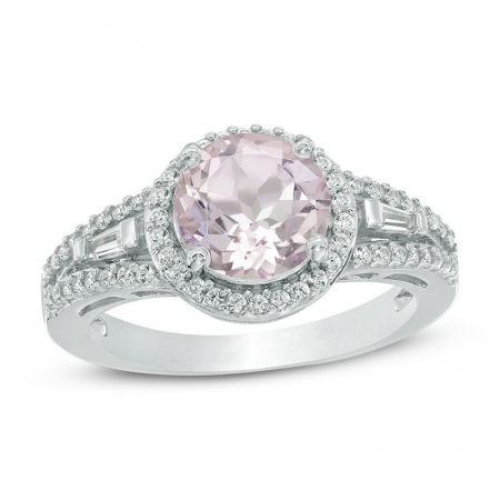 Средние характеристики: аметист розовый, размер: 8 мм, огранка Круг; круглый белый сапфир гт диаметром 1 мм; белый сапфир гт, огранка Багет