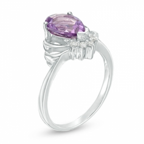 Средние характеристики: аметист фиолетовый, размер: 10x7 мм, огранка Груша; круглый бриллиант