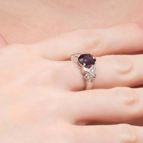 Средние характеристики: аметист фиолетовый, размер: 9x7 мм, огранка Овал; круглый бриллиант