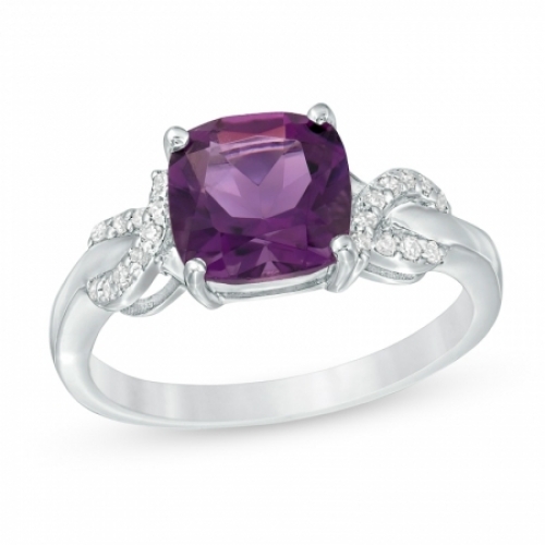 Средние характеристики: аметист фиолетовый, размер: 8 мм, огранка Кушон (подушка); круглый бриллиант